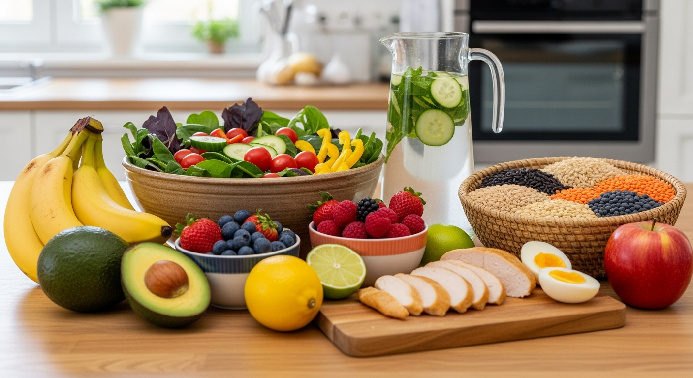 ການດື່ມນໍ້າໃຫ້ພຽງພໍ (Hydration) ແມ່ນສິ່ງຈຳເປັນຕໍ່ທຸກໜ້າທີ່ຂອງຮ່າງກາຍ, ລວມທັງການຄວບຄຸມອຸນຫະພູມ, ການຂົນສົ່ງສານອາຫານ, ແລະ ການກຳຈັດສານພິດ. ຄວນດື່ມນໍ້າສະອາດຢ່າງໜ້ອຍ 8 ຈອກຕໍ່ມື້, ຫຼື ຫຼາຍກວ່ານັ້ນຖ້າມີກິດຈະກຳທາງກາຍ ຫຼື ຢູ່ໃນສະພາບອາກາດຮ້ອນ. ນອກຈາກອາຫານແລ້ວ, ການດຳລົງຊີວິດ (Lifestyle) ໂດຍລວມຍັງມີຜົນຕໍ່ສຸຂະພາບຢ່າງຫຼວງຫຼາຍ. ການອອກກຳລັງກາຍເປັນປະຈຳ (Fitness), ການນອນຫຼັບພຽງພໍ, ແລະ ການຈັດການຄວາມຄຽດແມ່ນປັດໄຈສຳຄັນທີ່ຊ່ວຍເພີ່ມພະລັງງານ (Energy) ແລະ ສົ່ງເສີມສຸຂະພາບໂດຍລວມ.
